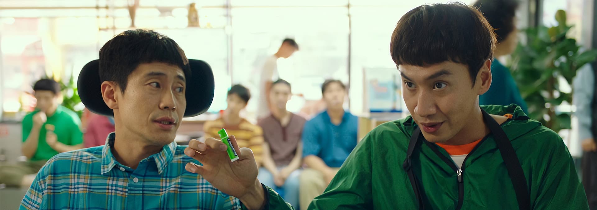 An unlikely pair of friends go everywhere together. One is a quick-witted wheelchair user, the other is an athletic man with a child’s intelligence.
