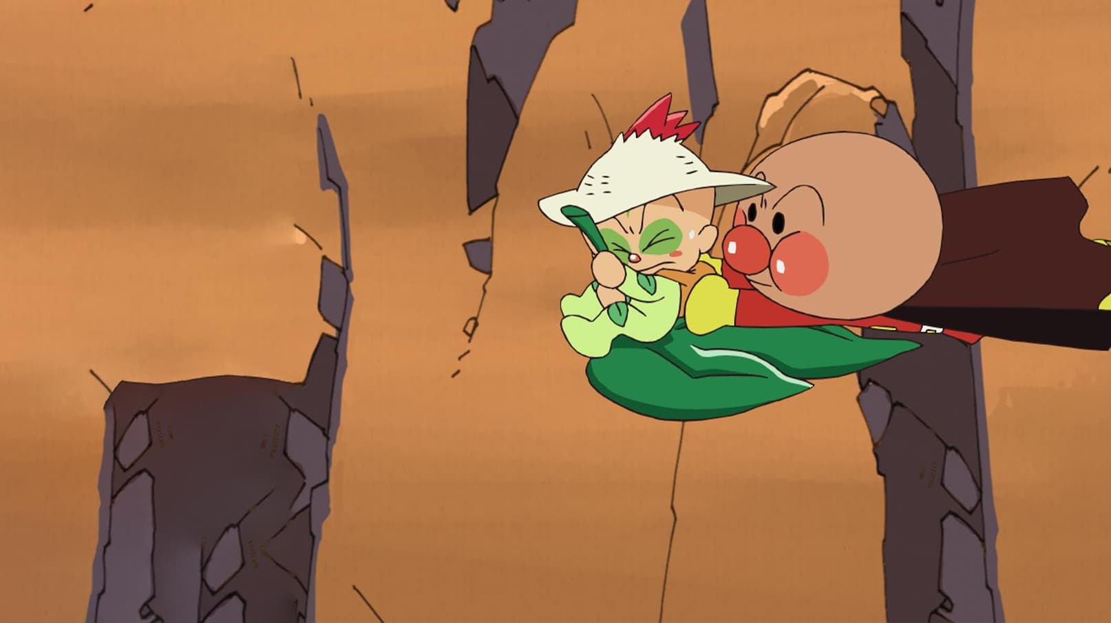 Anpanman deberá poner en su lugar a su nuevo aprendiz Happie pues, por influencia de Baikinman, ha puesto a toda su aldea en peligro.