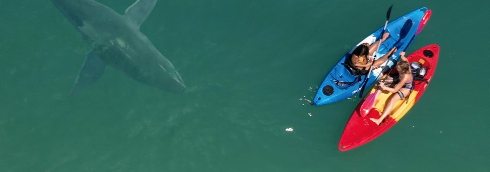 Three kayakers get trapped almost four miles from shore on a remote island with a great white shark determined to keep them from getting out.