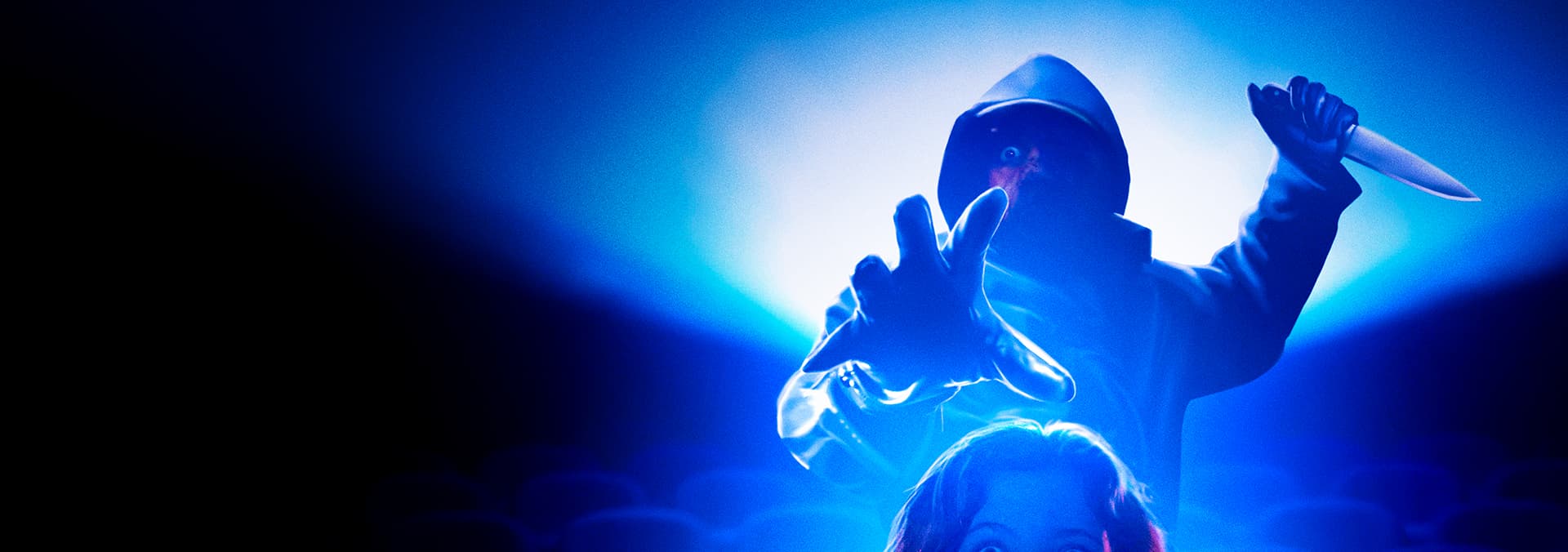When a vicious murderer attacks a local cinema, the projectionist's daughter and a group of patrons must fight back in the darkness, during a matinee.