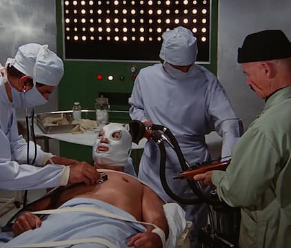 El Santo and Blue Demon team up with a couple of detectives to stop the mad doctor from conducting fiendish brain transplant experiments.