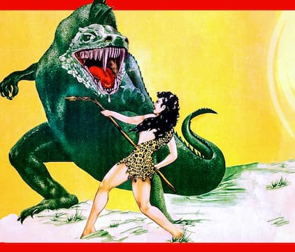 The crew of a downed WWII bomber plane encounter dinosaurs and a tribe of Amazons on a remote island in this schlock classic told through flashbacks.