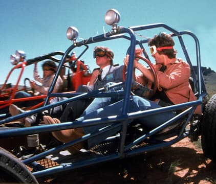 A bus full of tourists is hijacked by a team of dune-buggy driving men. Trapped in the desert, the tourists must restore the bus to free themselves.