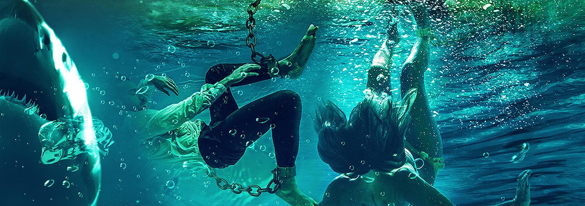 Five strangers, chained to a swimming pool by a masked sociopath, fight for their lives in a game of Russian roulette with a Great White Shark.