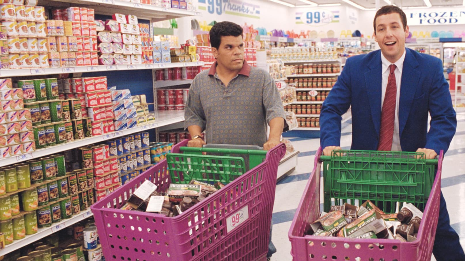 On the run from a gang, Barry travels to Hawaii with frequent flyer miles earned from a pudding promotion to meet up with the woman of his dreams.