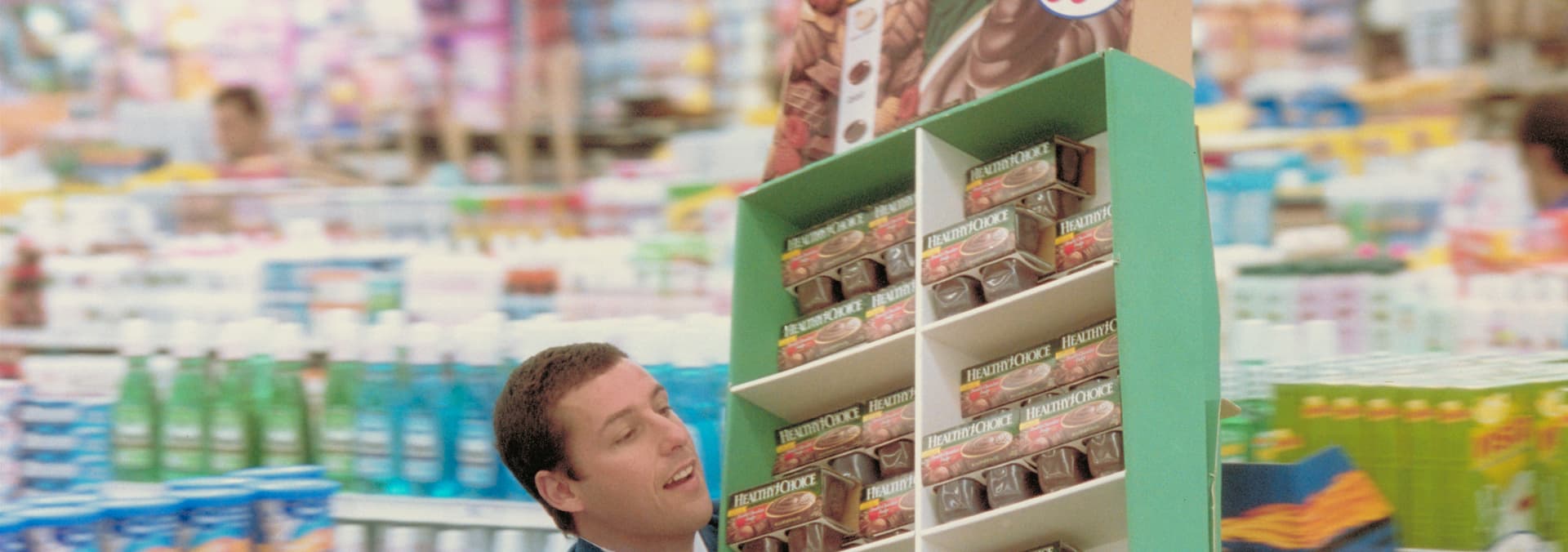 Barry Egan (Adam Sandler), the owner of a struggling vanity plungers company, falls in love with Lena Leonard (Emily Watson), a woman his sister is trying to set him up with. On the run from a gang of thugs, Barry travels to Hawaii, using the frequent flier mile coupons clipped from several cartonsof pudding cups, to meet up with this girl of his dreams.