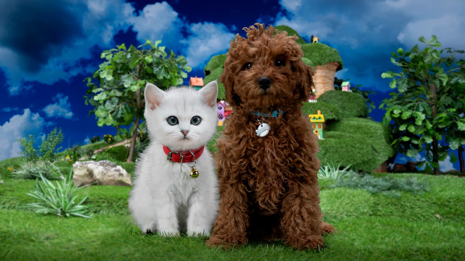Follow the daily adventures of Mittens the kitten and Pants the puppy, best friends who live in the all-animal town of Kibble Corners.