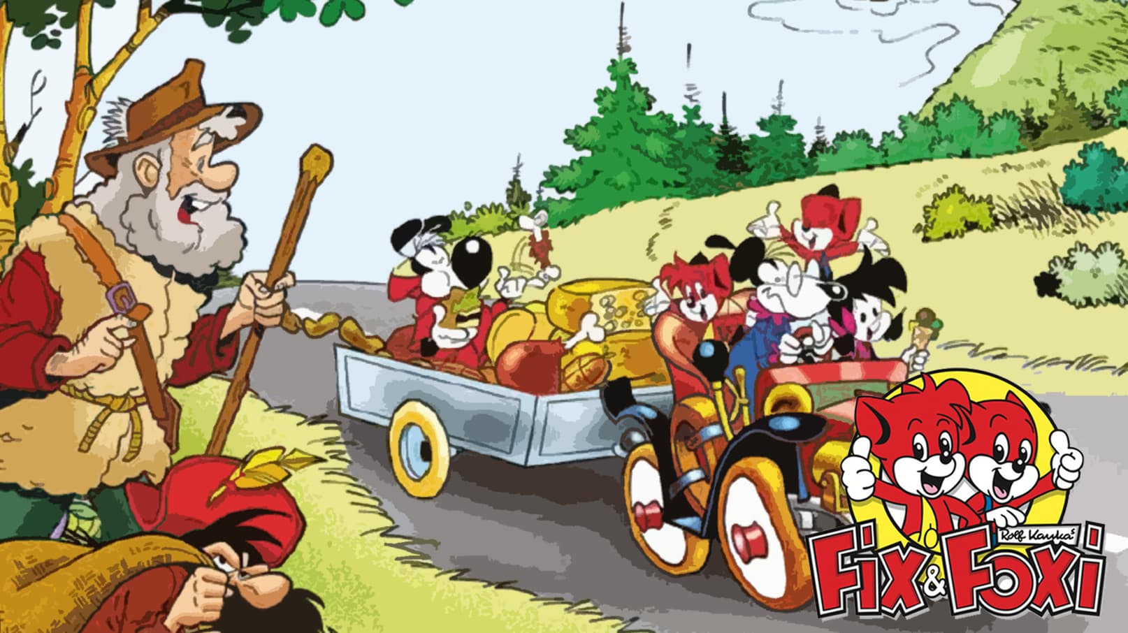 Fix & Foxi and Lupo want to watch cartoons, but the TV is defect. Lupo repairs it but now, a strange character appears on the screen and then comes out to eat all their goodies. Chase, show-down!