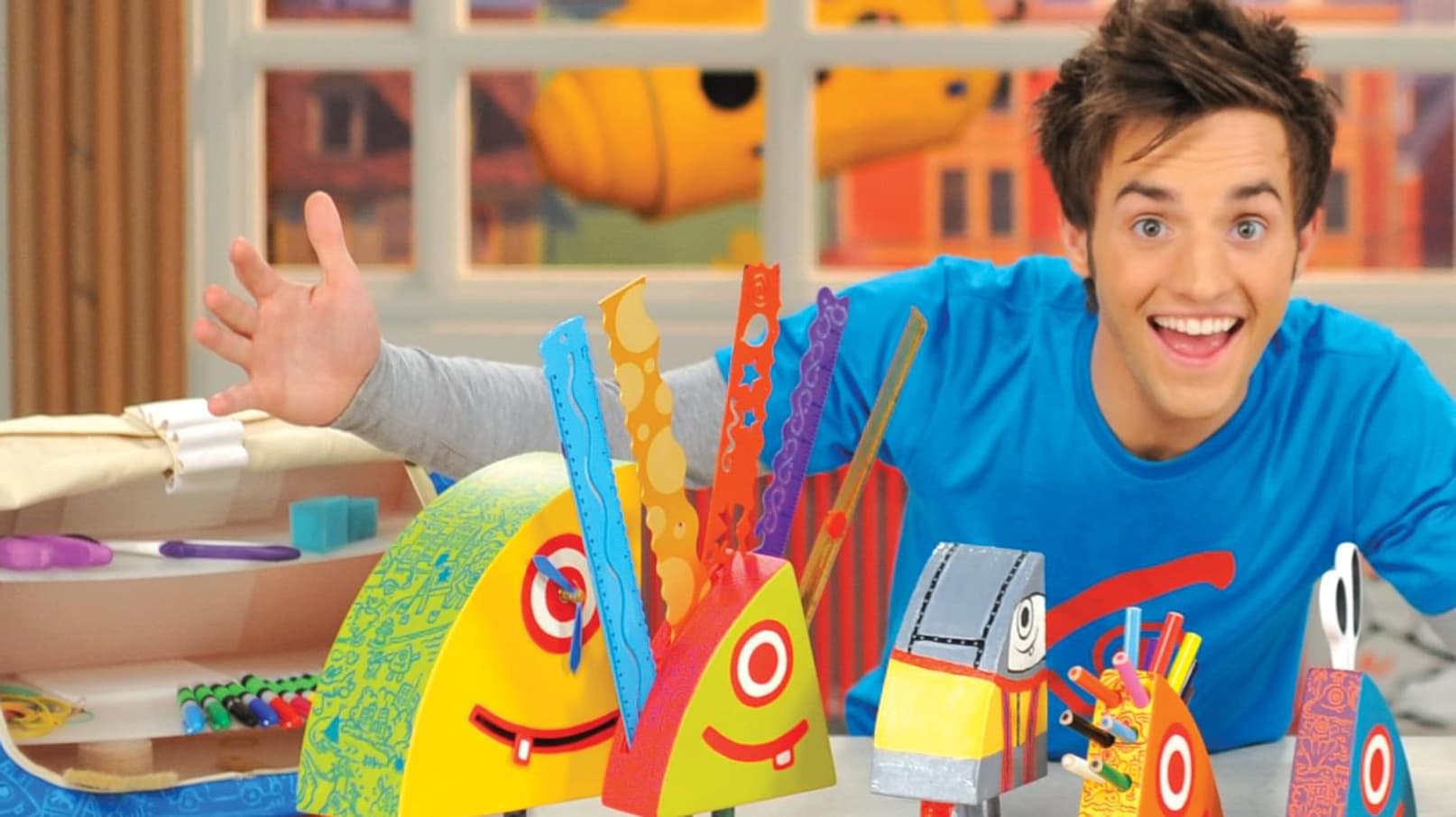 Jeremie recycles plastic water bottles into a water tower art sculpture, shows how to decorate backpacks with pipe cleaner critters, and gives tips on drawing both realistic and crazy looking faces.