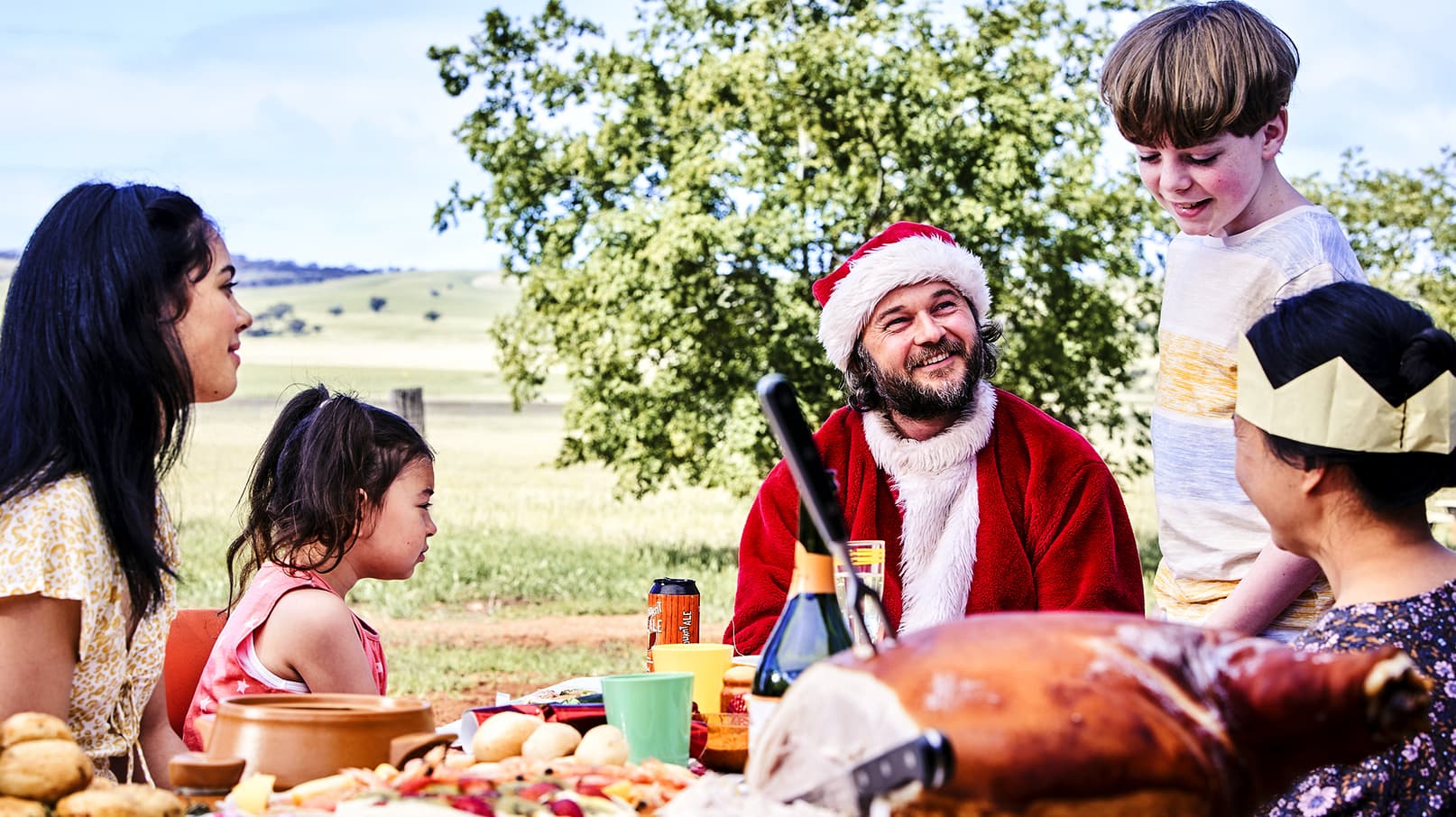 A family in the Australian Outback are divided between belief and mistrust when a criminal in a Santa suit thuds into their failing farm estate.