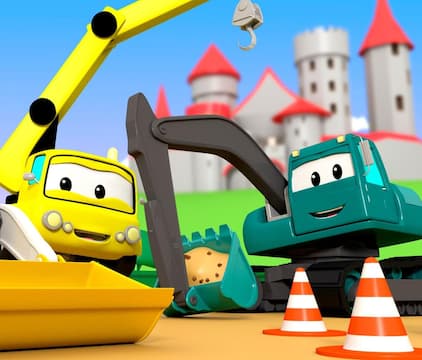 El Equipo de Camiones: Ethan el camión volquete, Edgar la excavadora y Charlie la grúa son los ingeniosos miembros del Equipo Constructor!