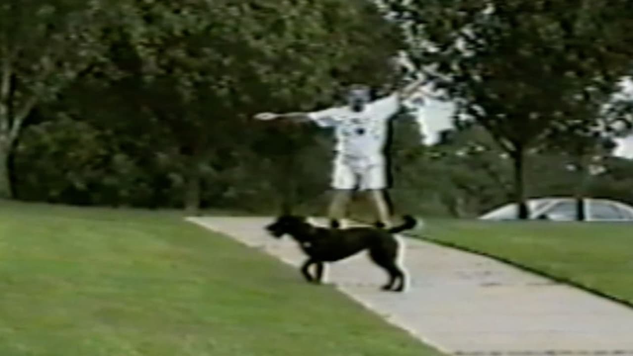 Man hit by ball batting cage, football player knocks down camera, dog knocks over boy playing tee ball, hockey goalie cat.