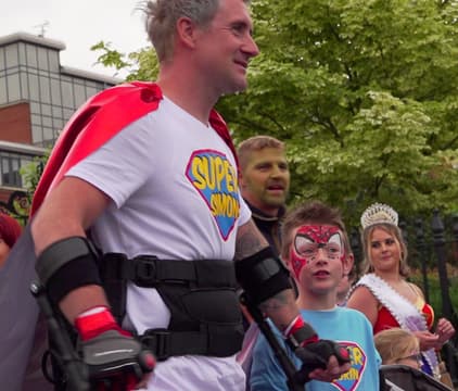 Simon Kindlysides woke up one day and couldn't feel his legs. Paralyzed from the waist down he became the first paralyzed man to walk the London marathon using an exoskeleton suit.