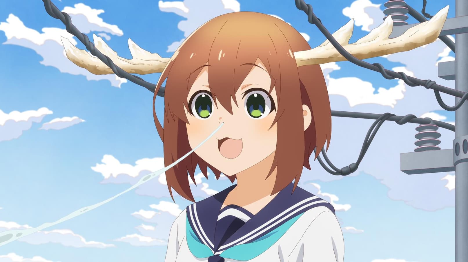 On her way to school, a teen rescues another student with deer-like antlers from a power line, marking the beginning of an unforgettable adventure.