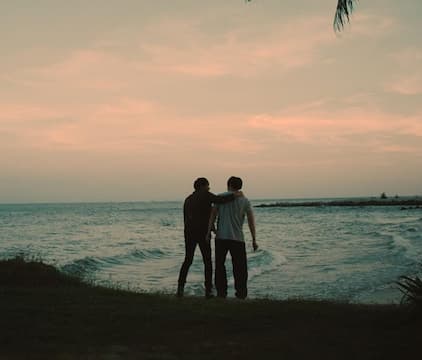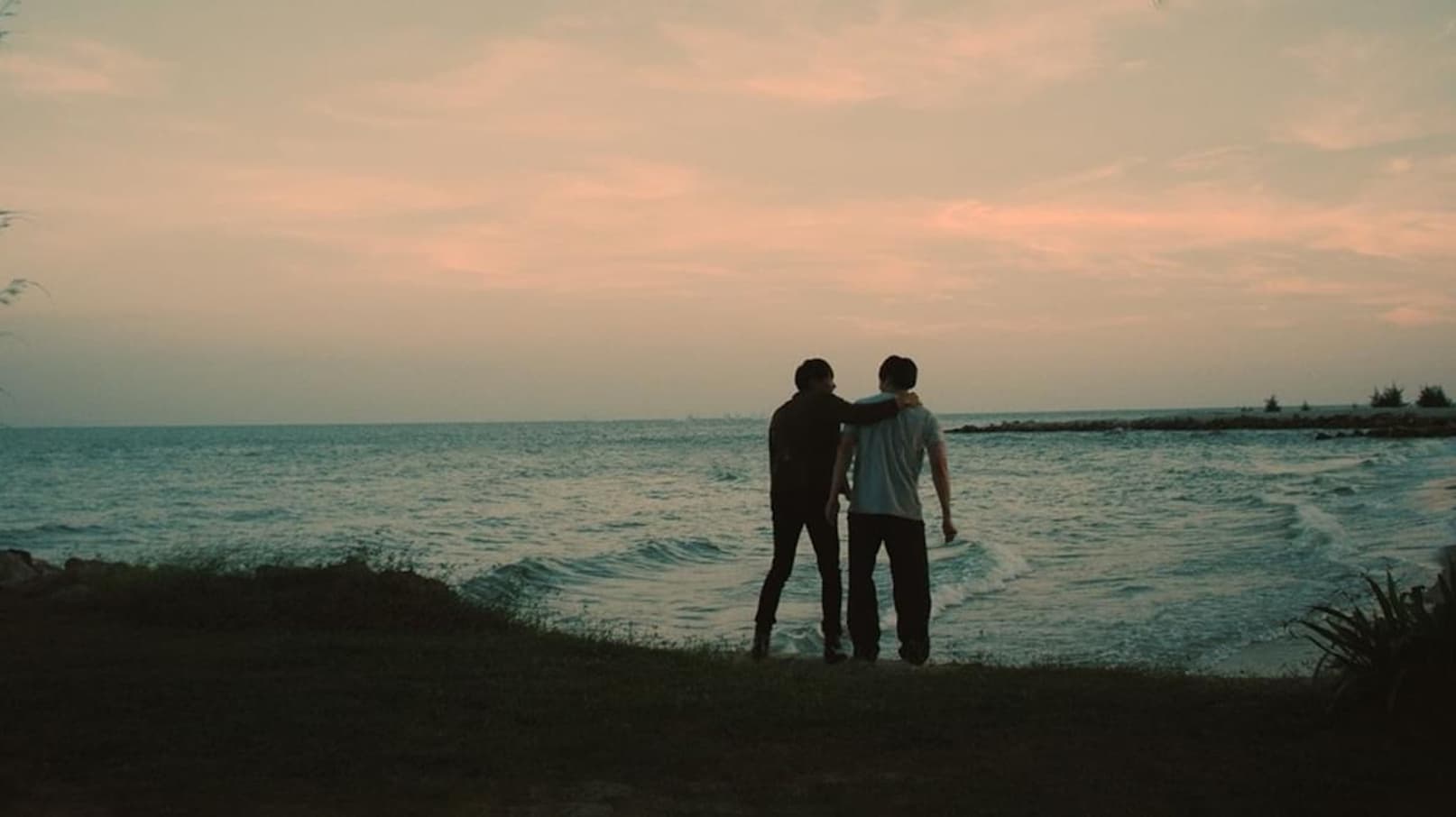 As waves crash against the shore, the film’s crew finds solace in secluded rooms. Ait, driven by longing, escapes into James’s space.
