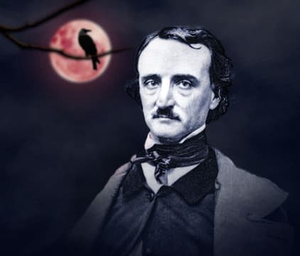 Poe's young wife suffers a fatal disease, compelling him to write "Masque of the Red Death" and "The Raven." He pioneers science fiction, pens a cosmic prose poem, but dies at 40.