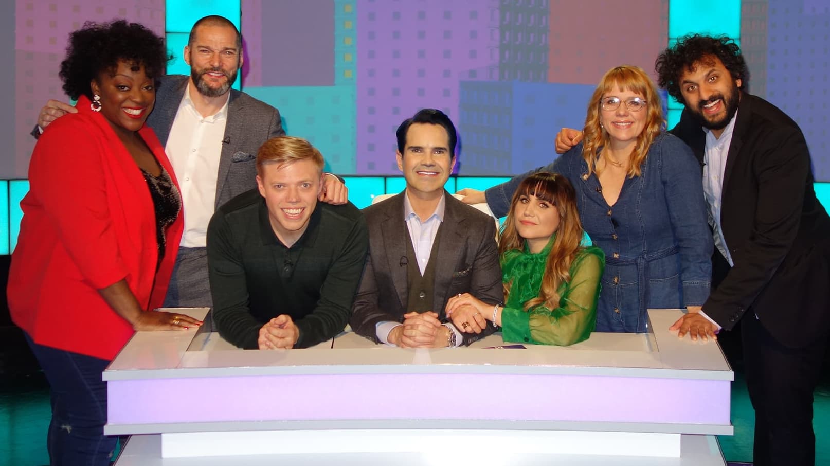 Jimmy Carr hosts a comedy panel show where celebrity teams humorously debate stats and polls on topical questions and public opinions.
