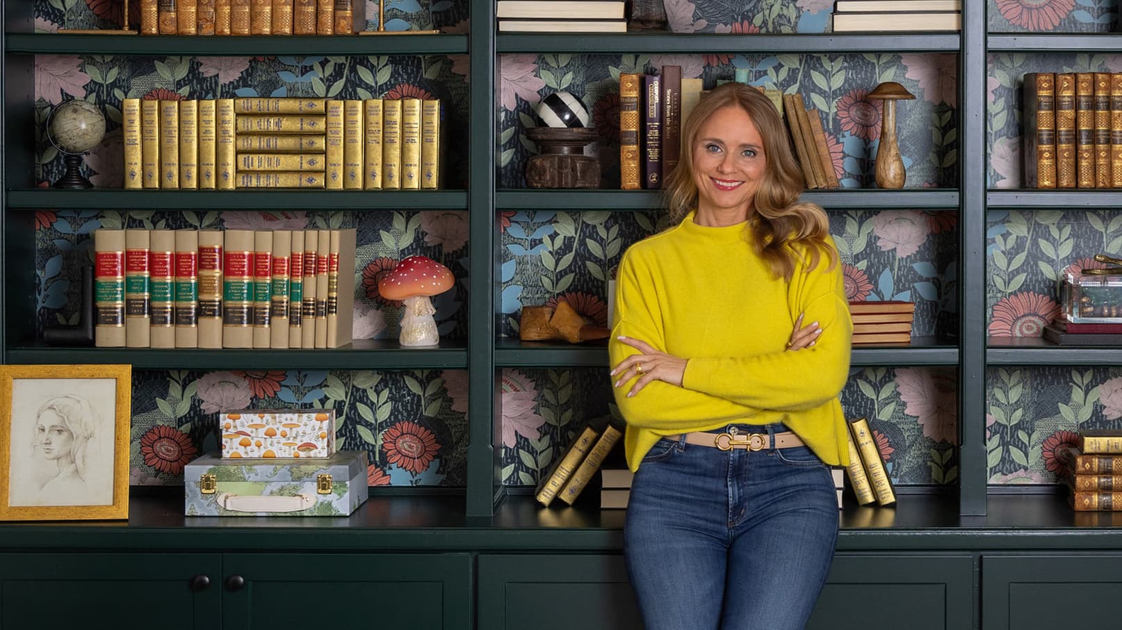 Tamara works carefully to salvage a wallpaper mural in a 1909 Craftsman.