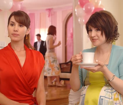 This ensemble comedy proves that surviving the politics of pregnancy and maintaining relationships with family and friends can be just as demanding as raising a child. Andrew (series star PETER CAMBOR) and Lauren (series star JENNIFER WESTFELDT) have just found out they're going to have a baby. Surrounding Andrew and Lauren as they embark on their journey is a close-knit circle of friends, all of whom have varying opinions, experience and advice on starting a family. Julie (series star MELANIE PAXSON) and Eric (series star SUNKRISH BALA), also about to have their first child, are the overly excited, slightly obnoxious expectant parents that Andrew and Lauren hope to never become. Lauren's best friend, Cooper (series star RACHAEL HARRIS), is a divorce attorney and career woman who is skeptical of marriage altogether and will do her best to keep Lauren from becoming another member of the "mommy cult." And the main concern of Andrew's buddy Danny (series star MICHAEL WEAVER) is meeting hot women. It's up to Andrew and Lauren to juggle the freedom and spontaneity of their old lives with the responsibility of their new lives, while straddling the worlds of their carefree single friends and the ever-changing worlds of their married ones. In the series premiere, Andrew and Lauren have a difficult time following rule number one of a new pregnancy--keeping it a secret. Suddenly switching to decaffeinated coffee, becoming a teetotaler at cocktail parties and going to a gynecologist are all hard to hide from family and close friends.