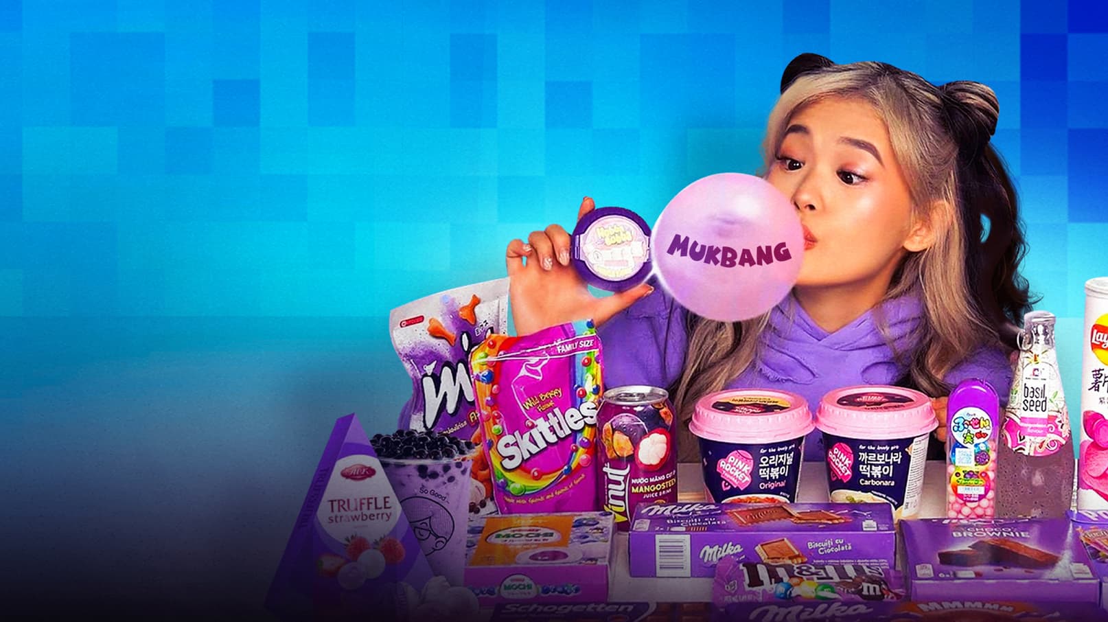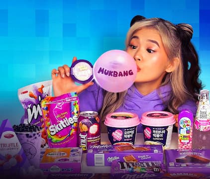Experience vibrant ASMR mukbang with Kika Kim – featuring colorful sweets, spicy dishes, Korean food, and fun themed eating challenges.