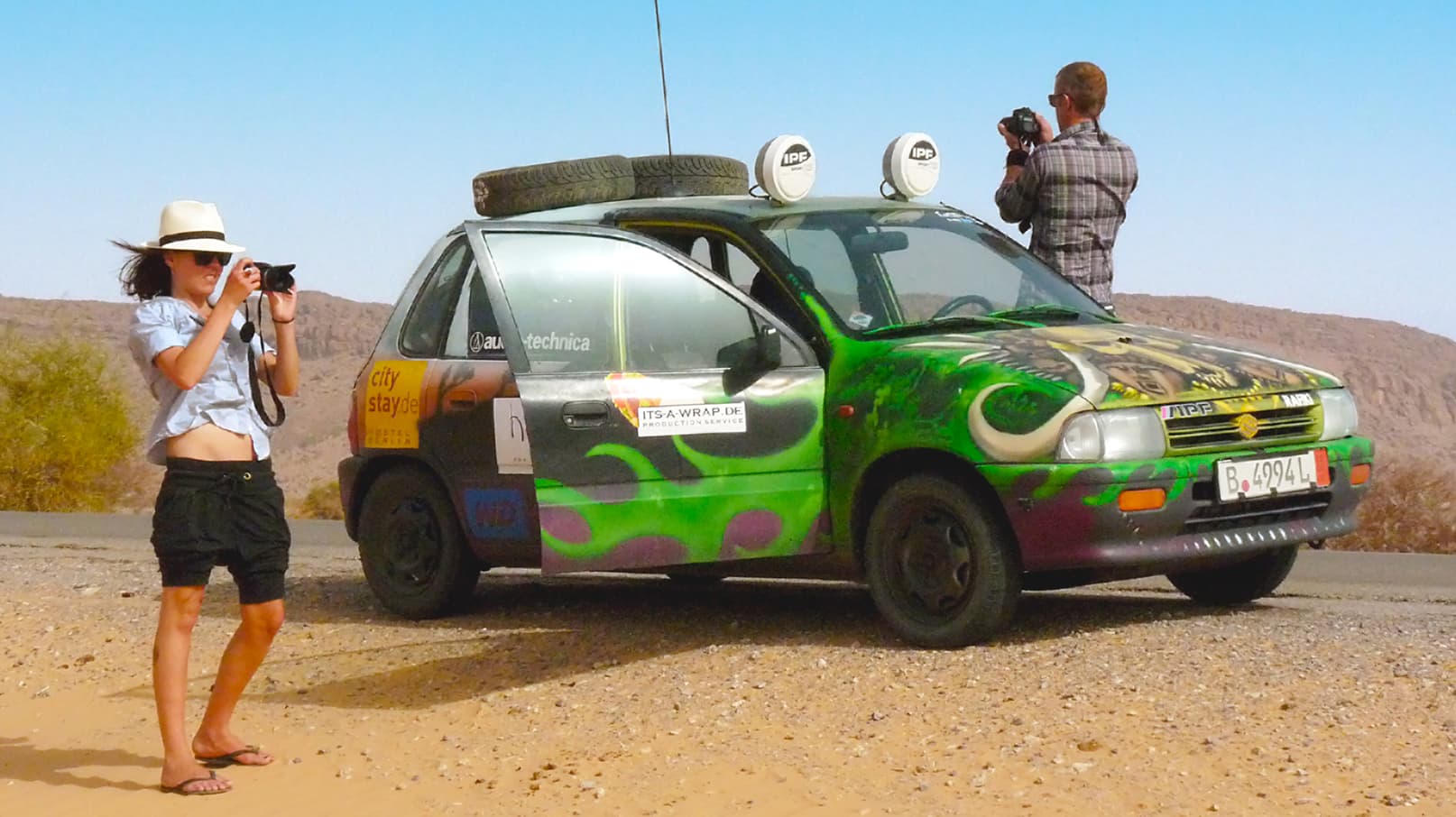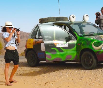 Morning comes early in the Sahara and the exhausted team gets lost en route to Dakhla. The next morning, disaster looms with the discovery that a car has been broken into. Finally, they reach the Mauritanian border only to discover that they can no longer obtain visas at the border, meaning someone must backtrack over 2,000km to Rabat.