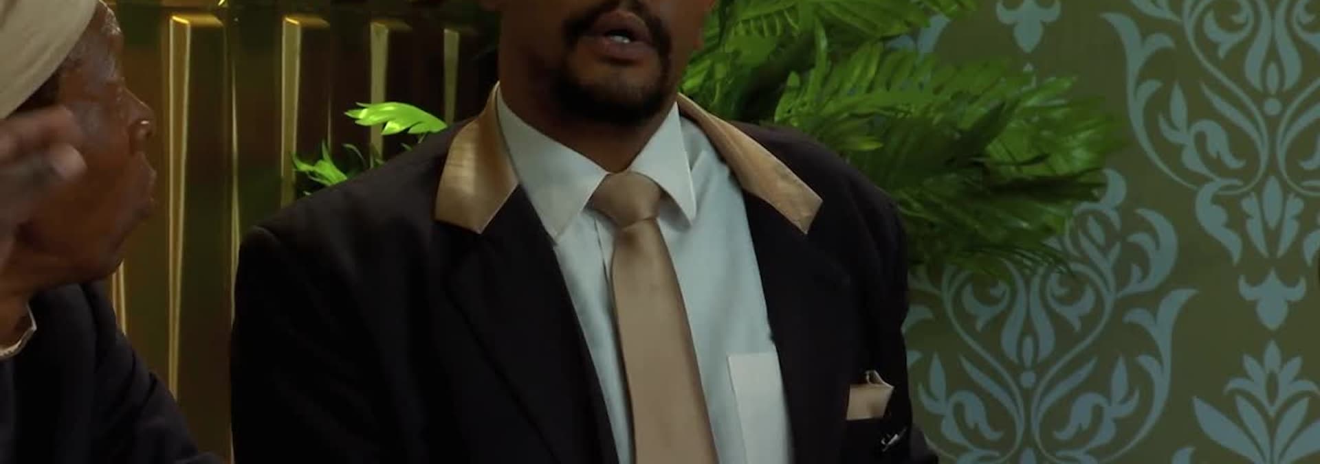 A mediator is called in to sort out the animosity between Phumi and Themba. Themba is still Uganda, and an impersonator Themba stands in for him during the negotiations.