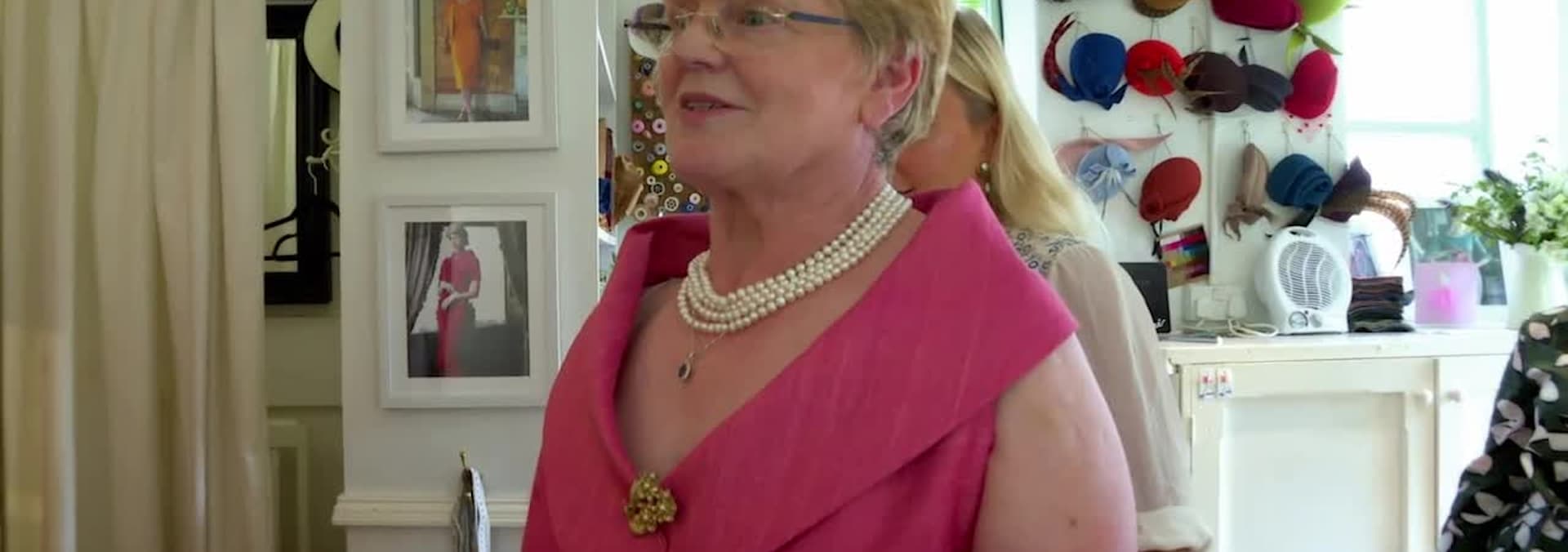 Comedian and actress Katherine Lynch searches for glamorous dresses for a Cote D'Azur photoshoot. Designers Charlotte and Jane create a bespoke suit for a top barrister.