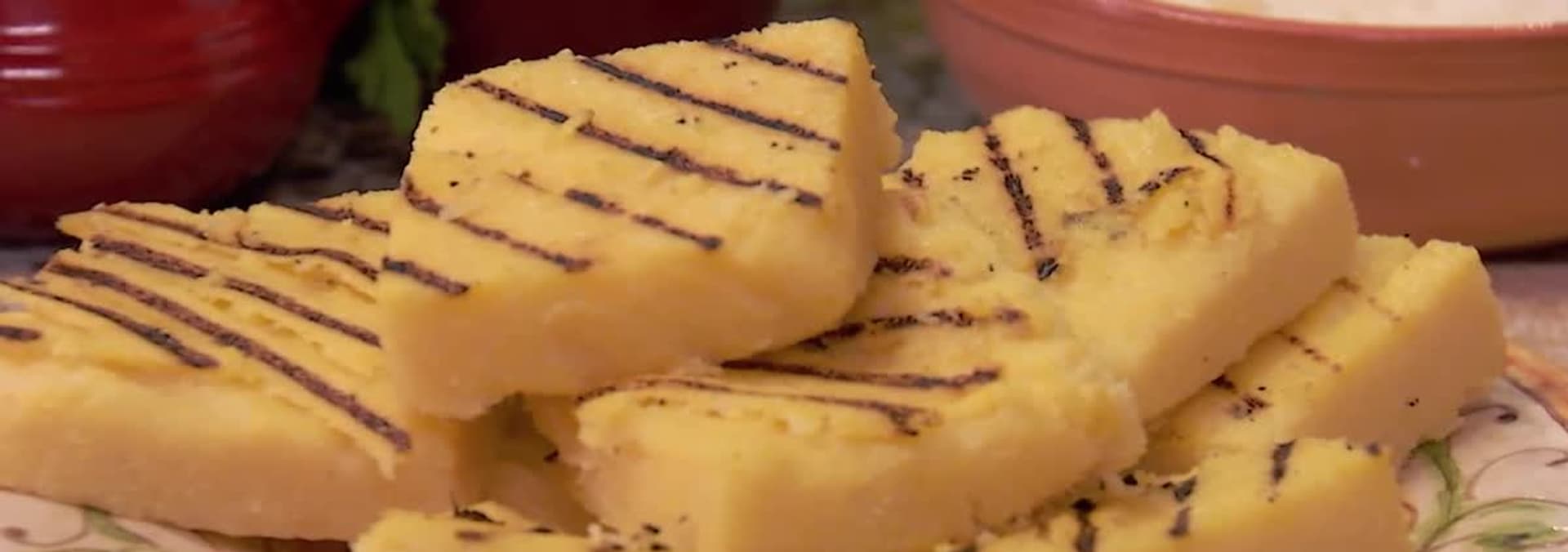 Lidia creates a chestnut and lentil soup, lamb stuffed with garlic, parsley, cheese, and bread served on top of polenta.