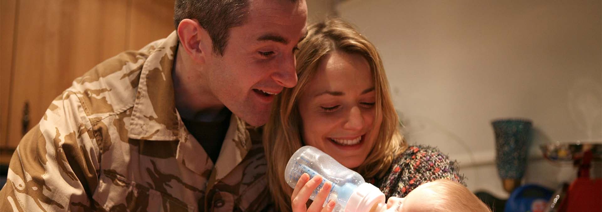 New mum Caroline is struggling to cope on her own while her husband Tom serves in Afghanistan.