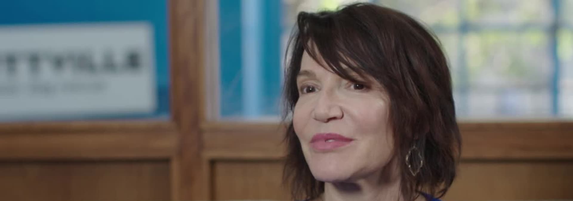 A woman who uses mini horses to encourage kids.