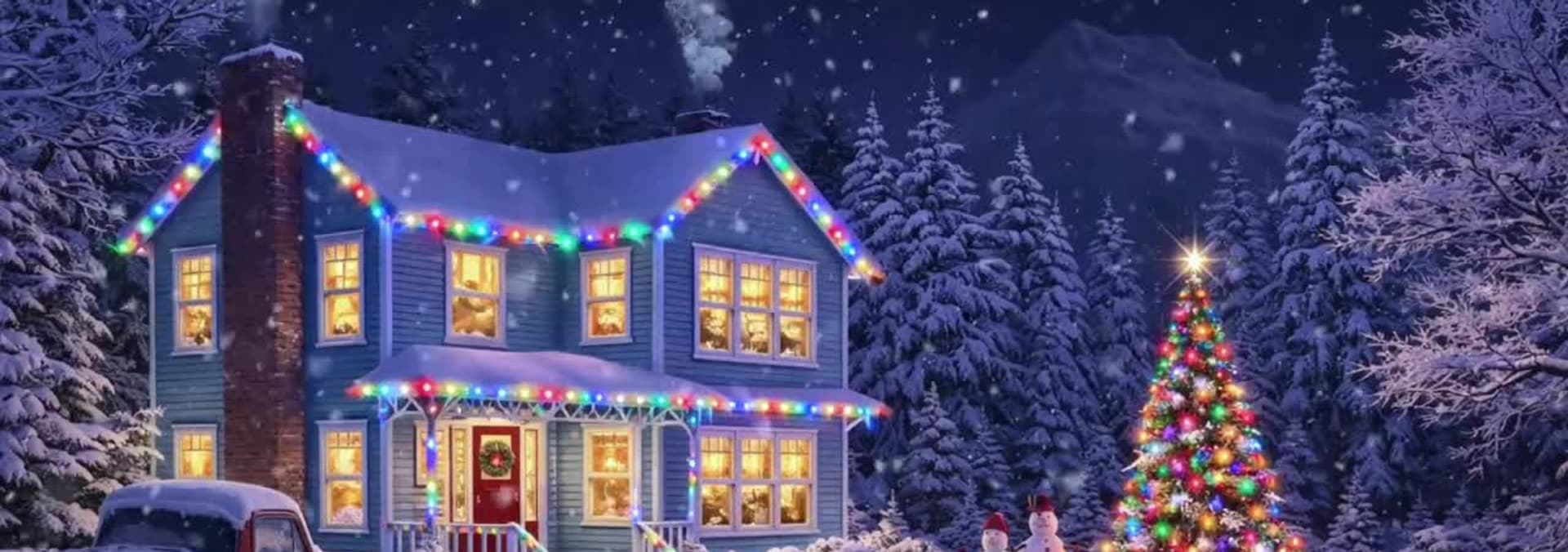 Turn your TV into a beautiful Christmas art piece with this snowy frontyard scene set to a soundtrack of holiday music!