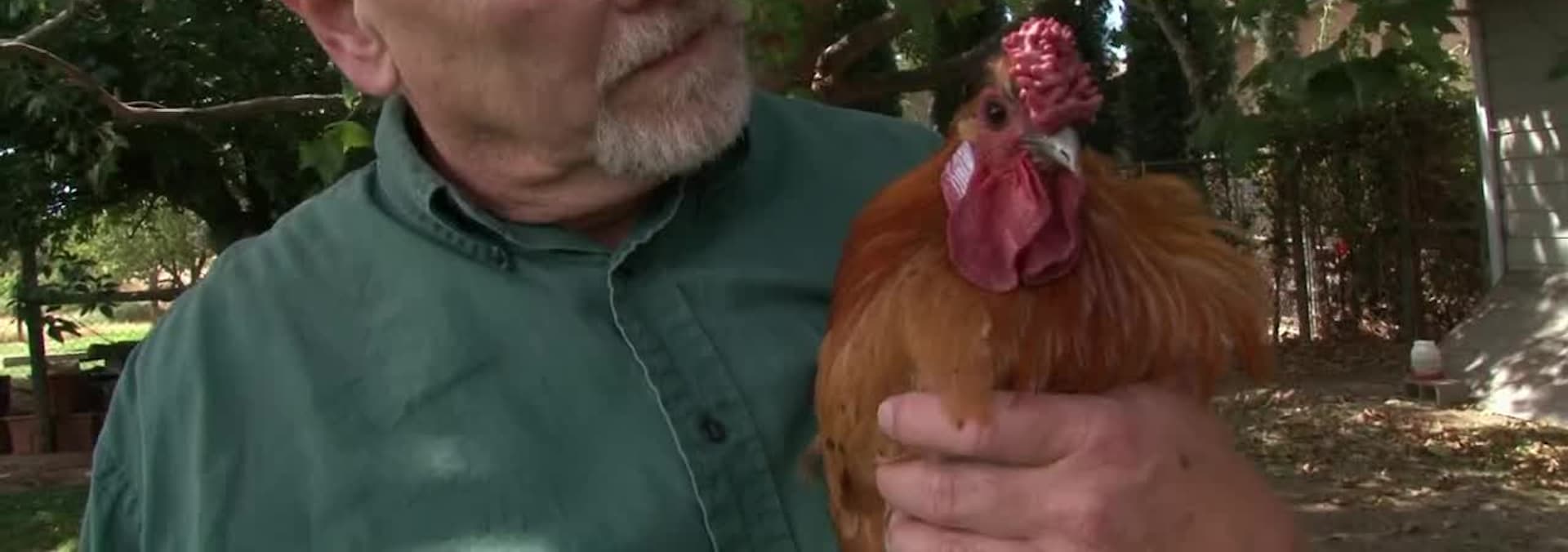 A retired Army linguist shares his house with 158 roosters and hens.
