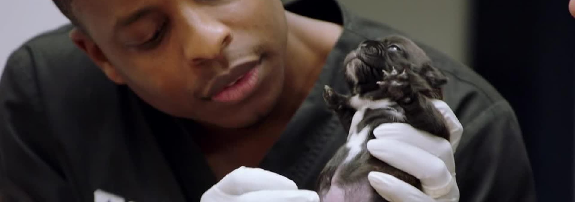 The veterinarians treat a puppy that needs surgery, and an injured owl.