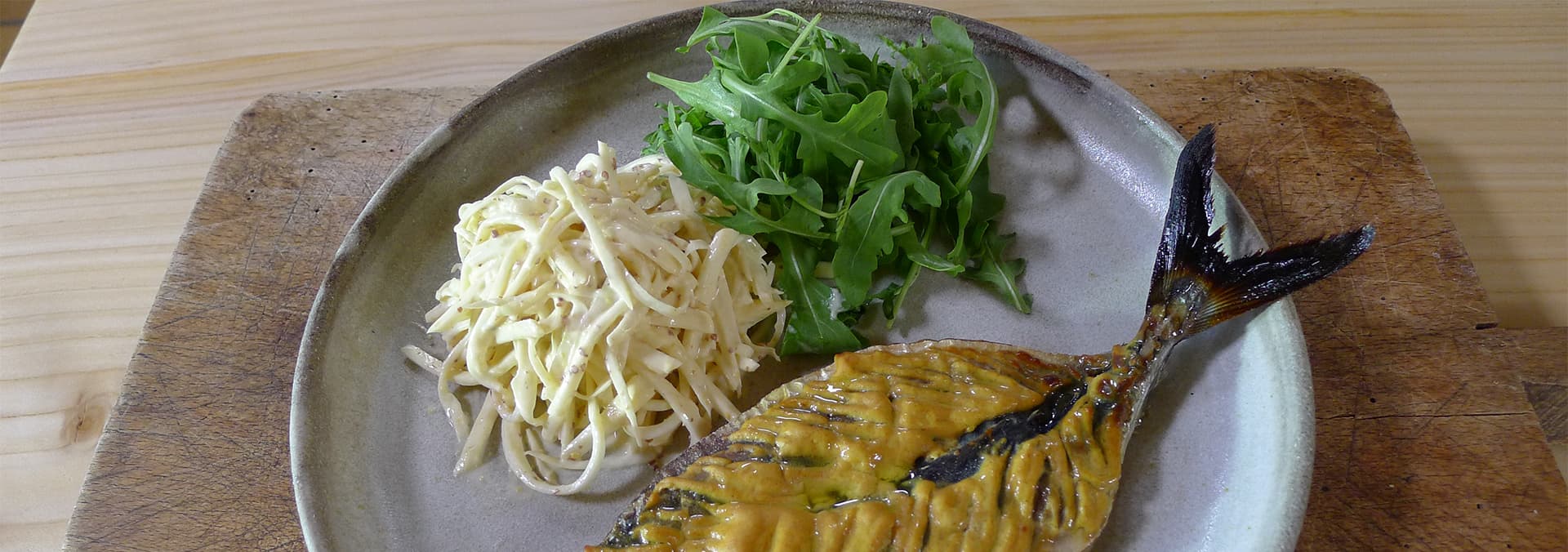 Michel is cooking a delicious barbecued chicken dish, roast rabbit with herbs, a mouthwatering salt cod fish with chestnut polenta fries and a classic frangipane tart.