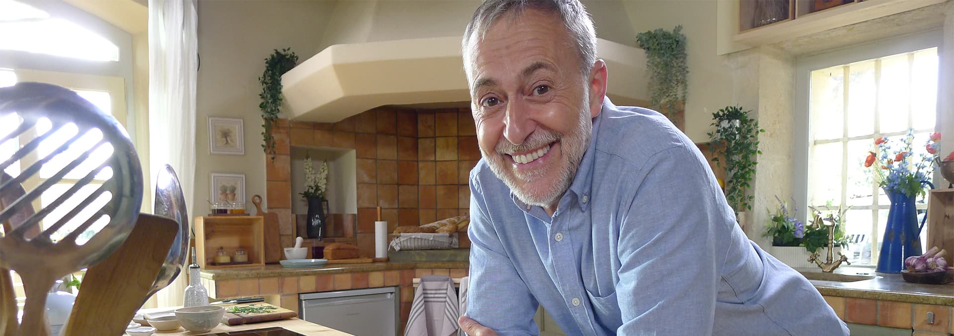 Michel is cooking a delicious barbecued chicken dish, roast rabbit with herbs, a mouthwatering salt cod fish with chestnut polenta fries and a classic frangipane tart.