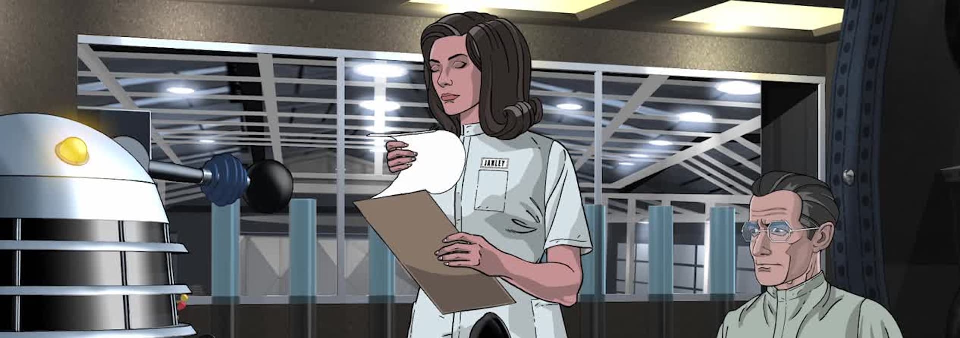 The Doctor demonstrates the strength of the human factor to the Daleks. A lost episode reimagined in animation.