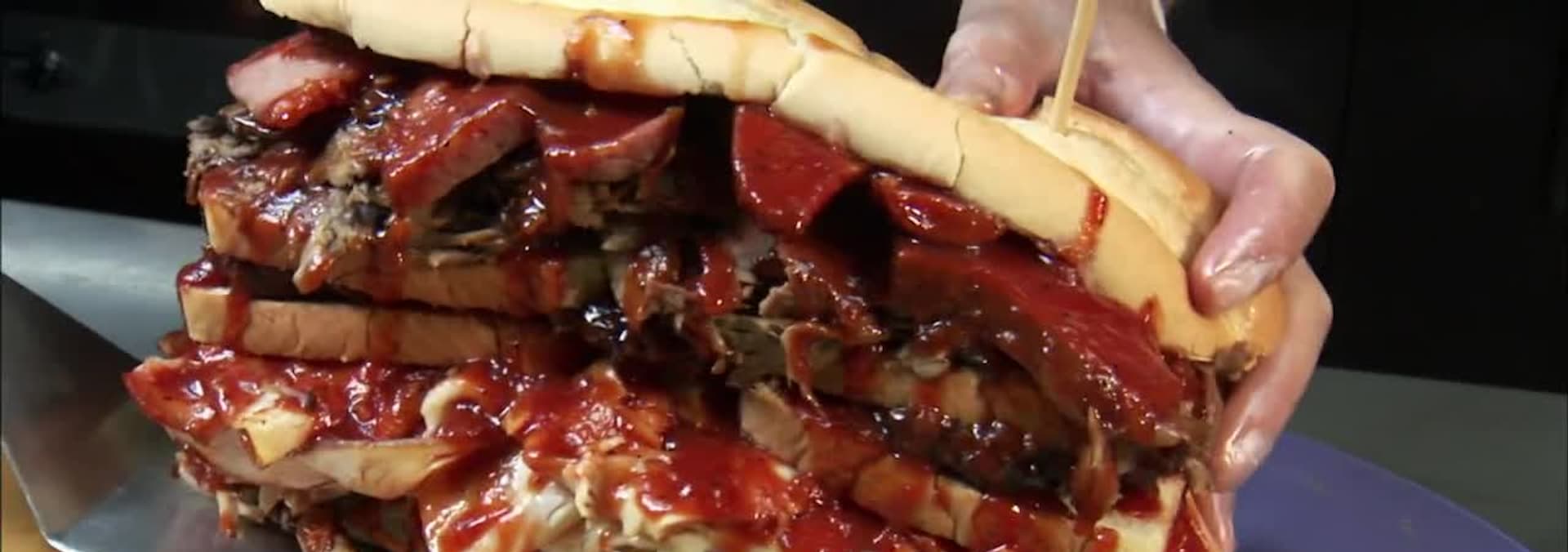 Adam is in Kansas City for the six-pound Ultimate Destroyer sandwich.