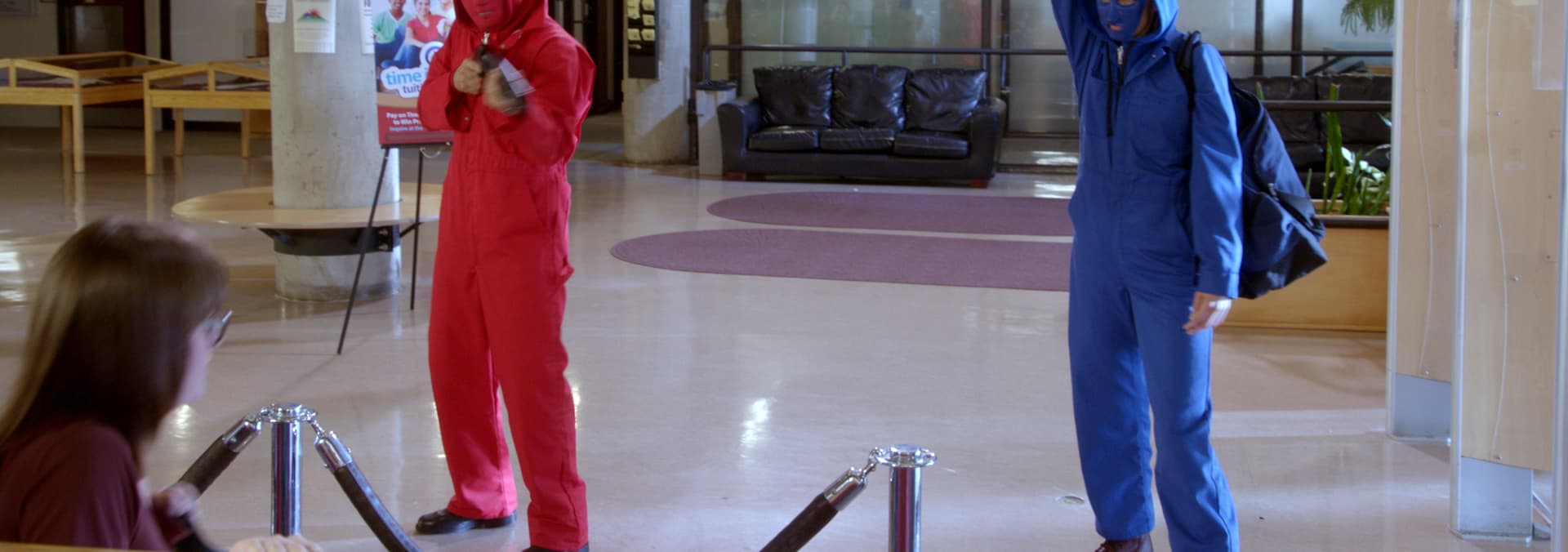 Jake is taken hostage and must investigate from inside an unusual, high stakes robbery; a trapped Mal risks his safety to help Leslie.