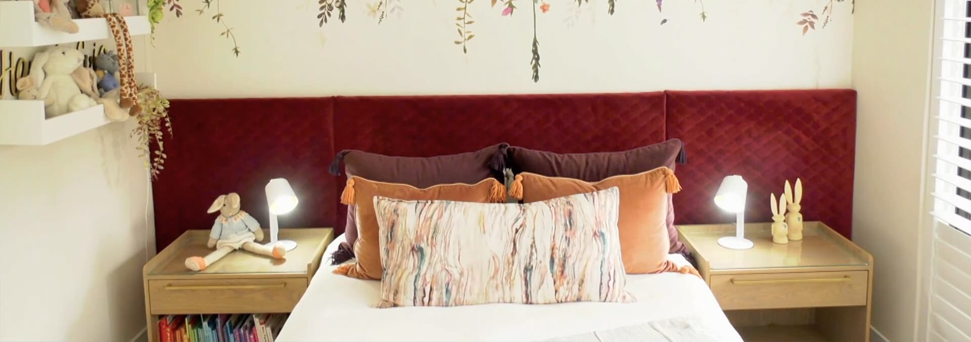 We step into a modern farmhouse style space brought alive by use of vibrant colours and wallpaper.
