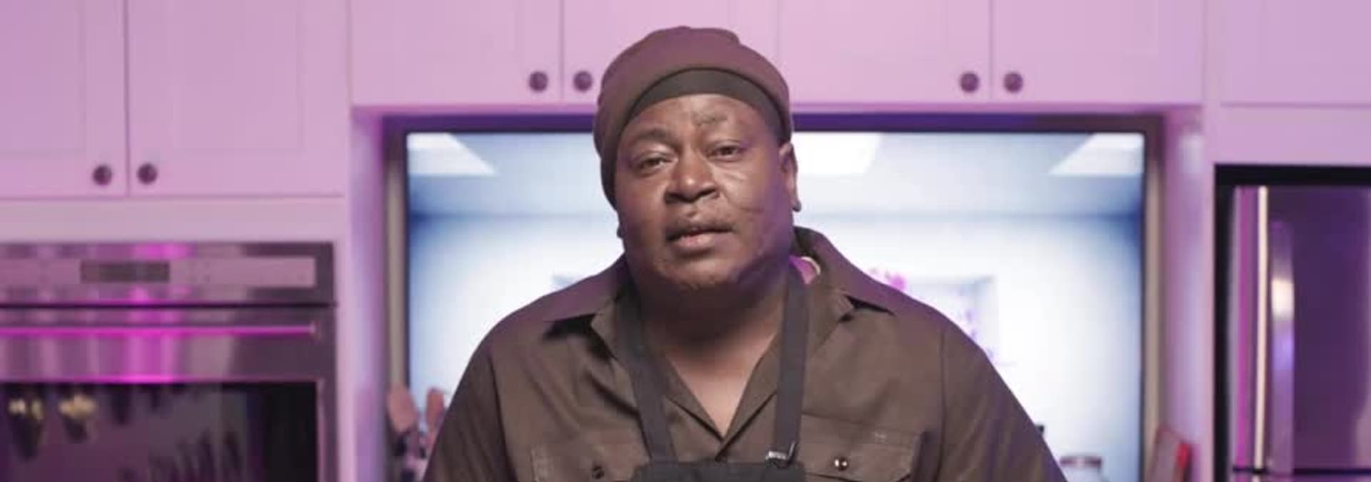 Trick Daddy serves up a steaming bowl of seafood potpie to Brandon Marshall. Safaree and Lexi Brown join the mix.
