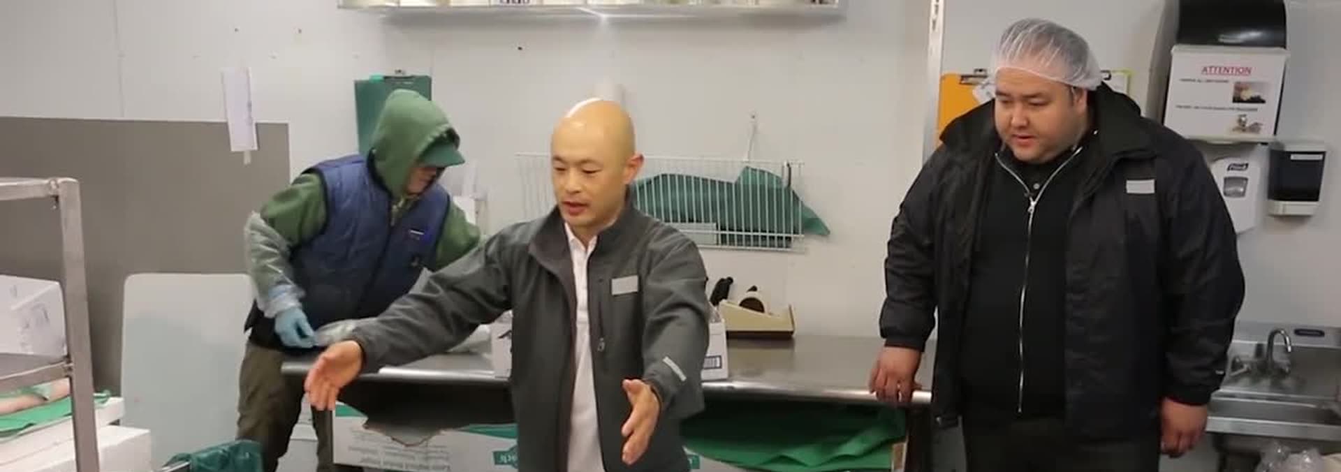 Jason drags George out of bed at 5AM to teach him how to pick fish at a fish market.
