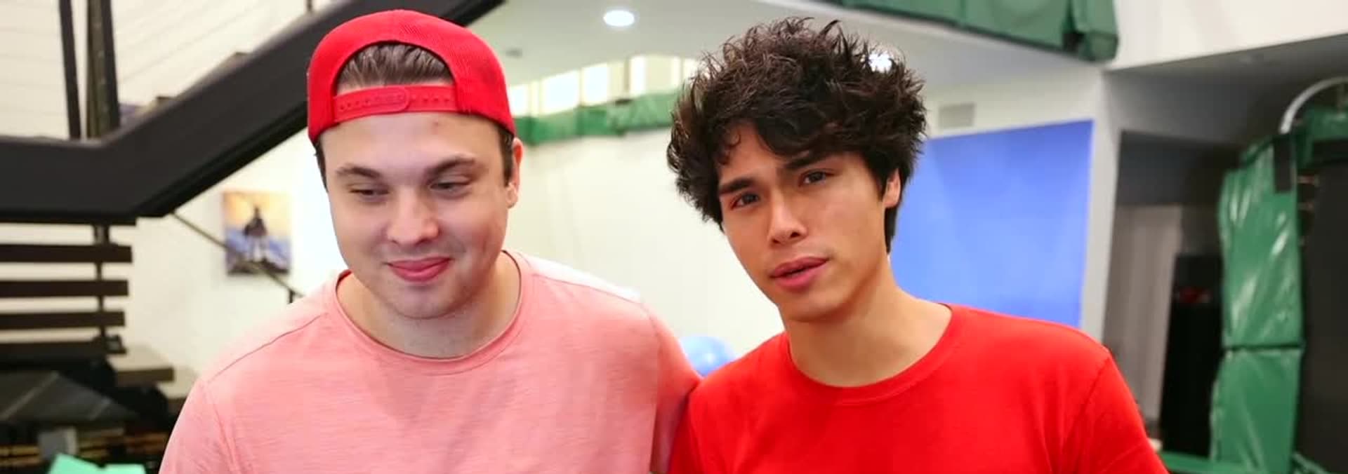 The twins do challenges as they turn their home into a trampoline park. Plus, a school lunch taste test.