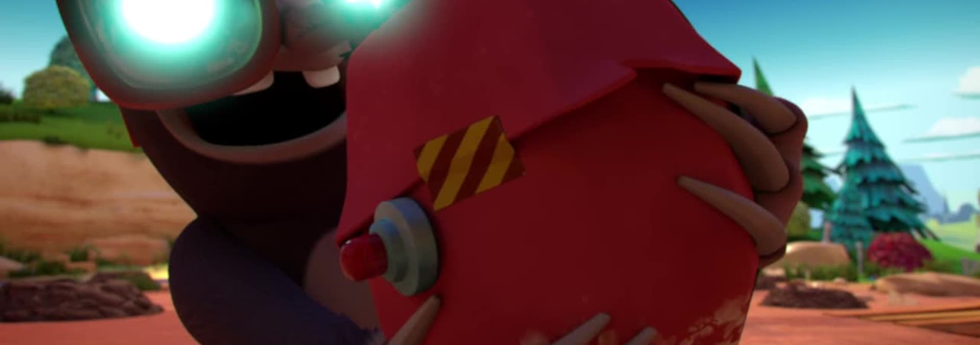 While trying to dig holes to plant a Pretzel Tree, Mad Rabbid transforms his assistant into a Mutant Infernal Mole.