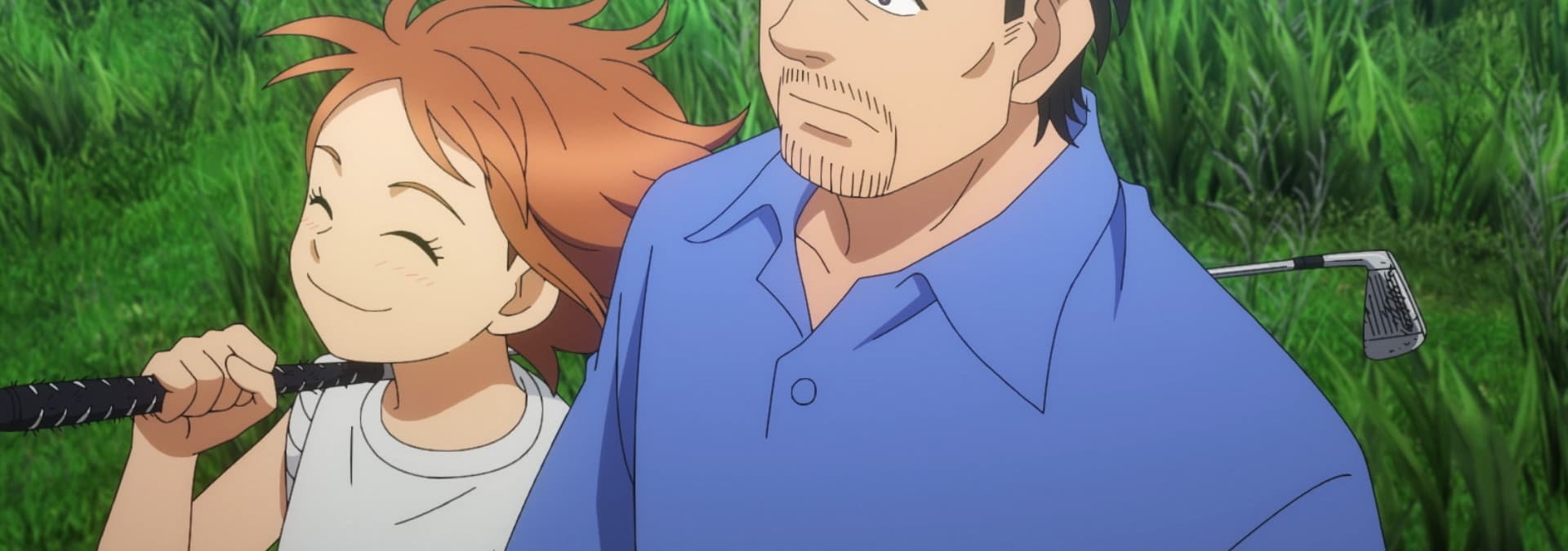 Tonbo impresses Igarashi with her 3-iron style. He adapts his wedge with her grip and coaches her, reminding him of teaching his son Rintaro and his regrets.