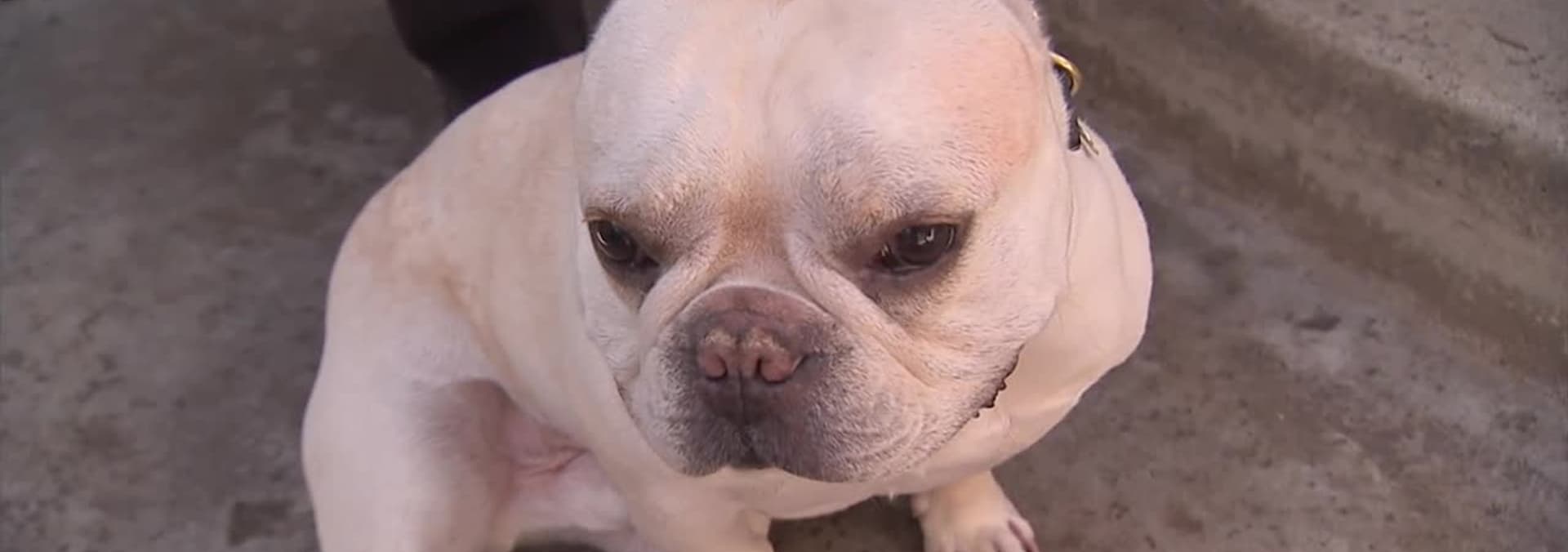 Actress Rhona Mitra (The Gates) needs help handling her bulldog, Oscar.