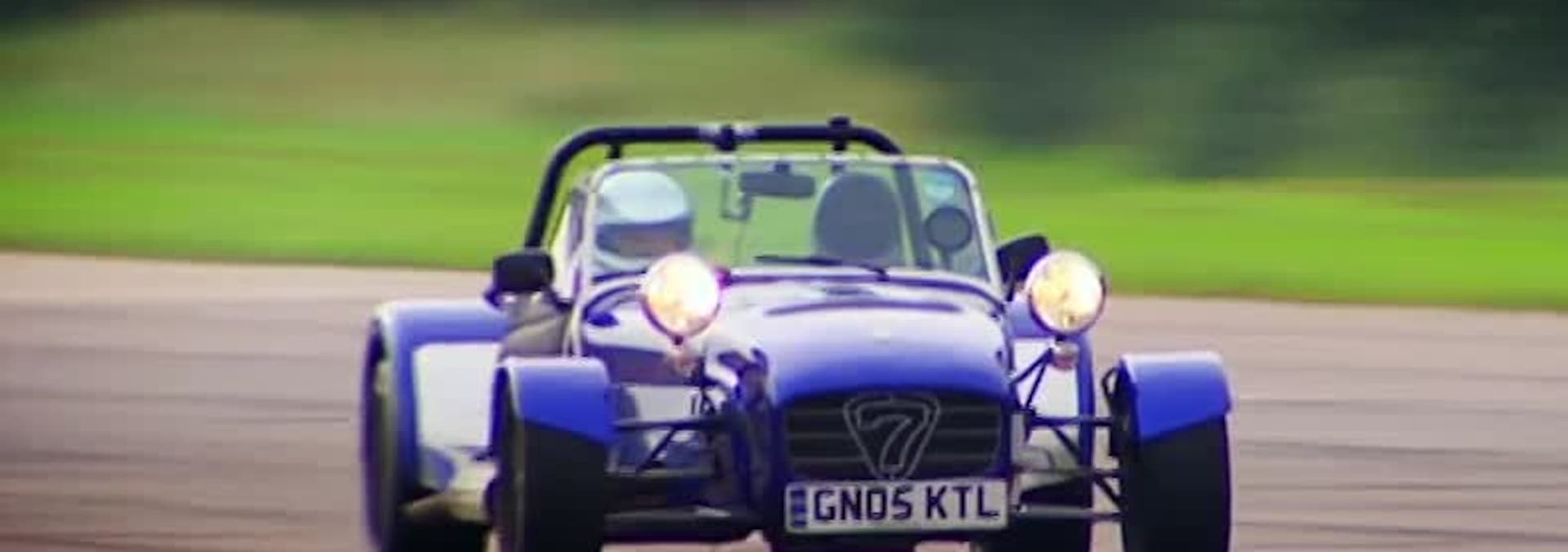 A little old lady and a Formula One driver do battle on the racetrack.