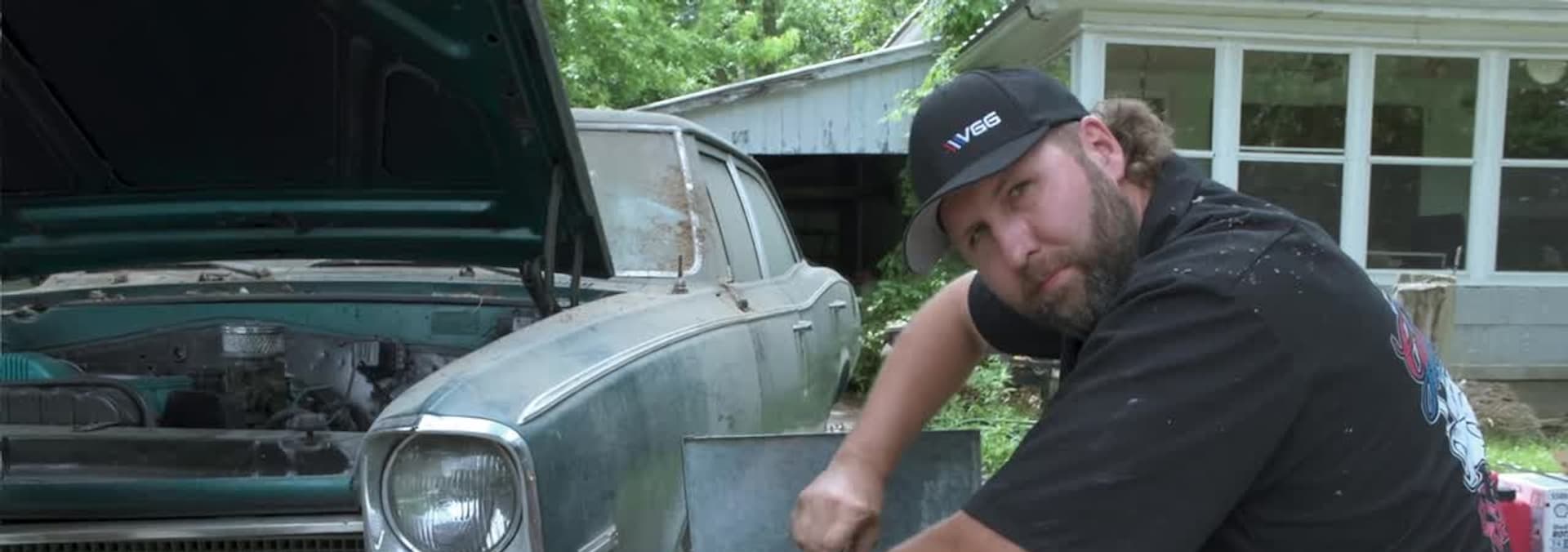 Derek battles to get a 1964 Chevy Bel Air out of a field in Kentucky.