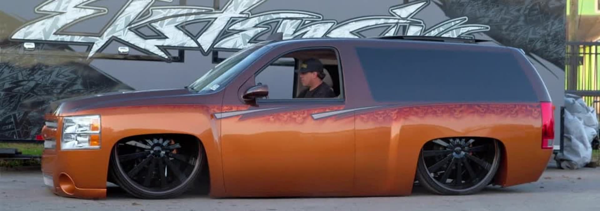 The crews lifts a Silverado 5500 over a foot with a custom air suspension.
