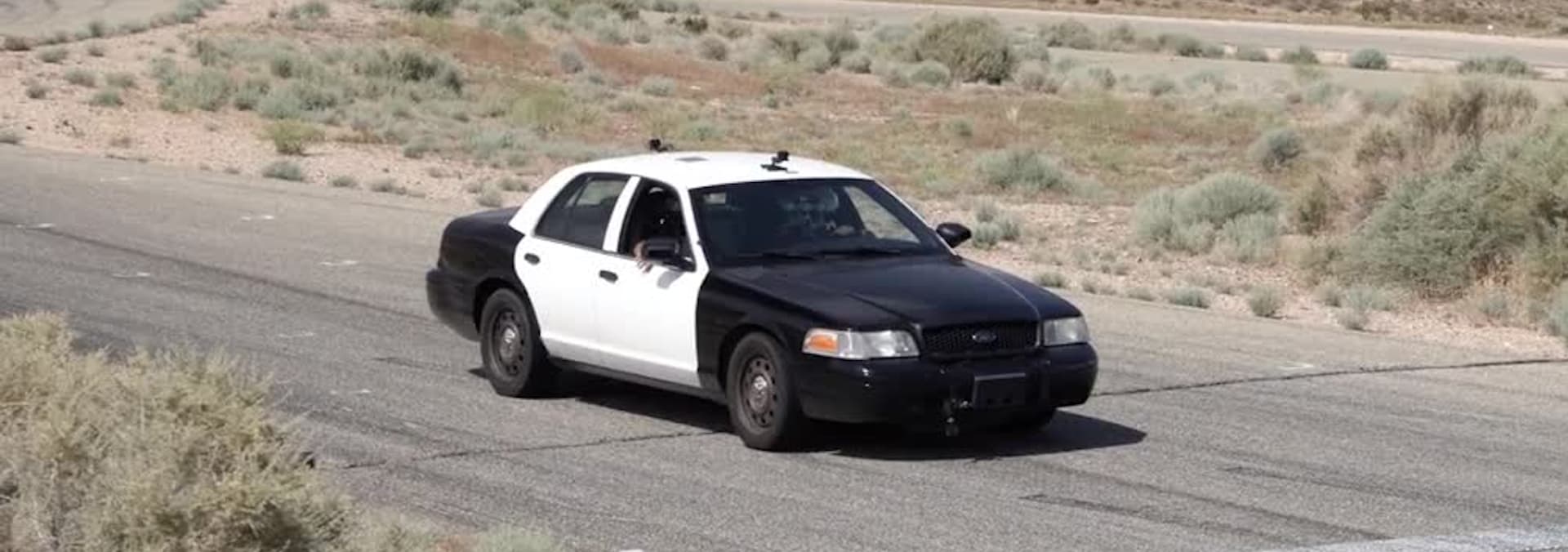 The guys bolt a few upgrades onto an old police car and head for the track.