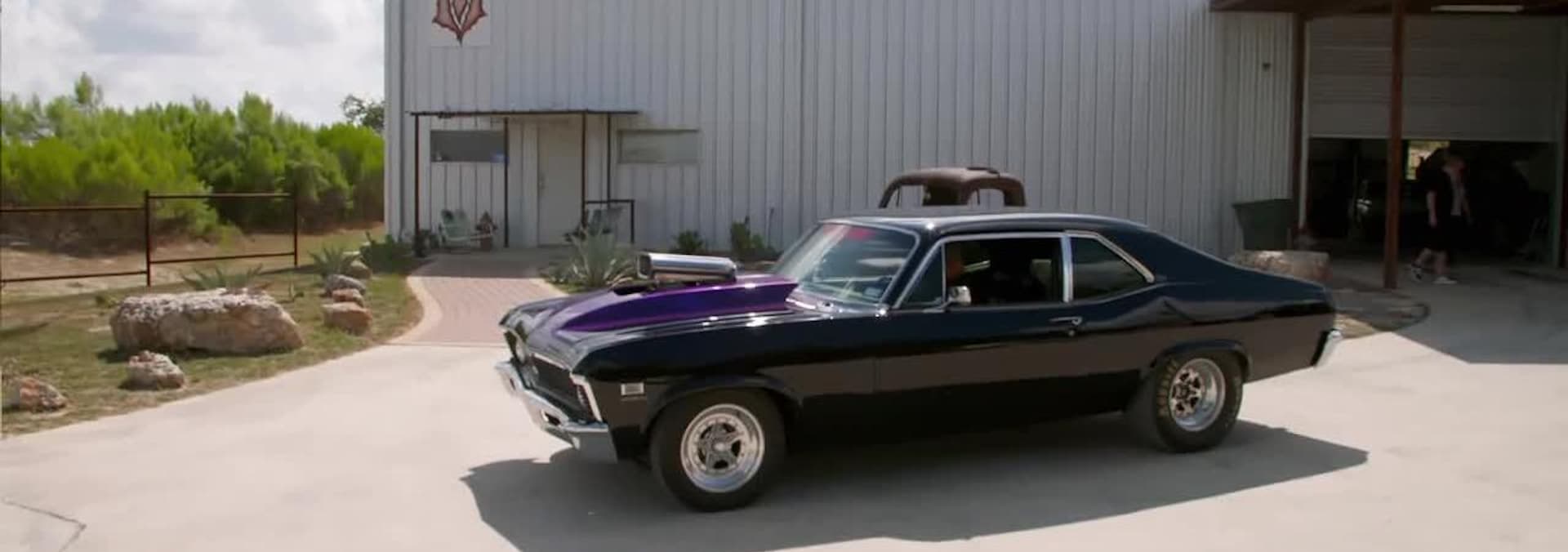 The crew struggles while working on a '68 Corvette's fiberglass body.